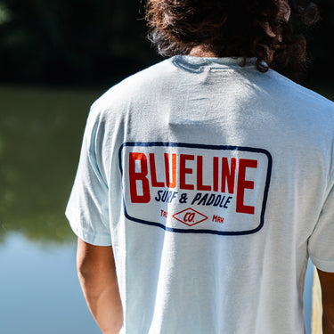 The Classic Badge T-Shirt is a clean, timeless Blueline staple built for everyday coastal wear. Printed on a soft, lightweight Ice Blue tee, it features the Classic Blueline Surf & Paddle badge on the chest and a bold back hit that stands out without feeling loud.