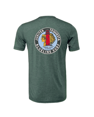 Celebrate the heart of Jupiter and Tequesta with the North County T-Shirt in Heather Pine. Featuring a bold circular back graphic with the Blueline logo, Jupiter Lighthouse, and native Florida colors, this tee is a soft, everyday staple for anyone who loves life along the North County coastline.