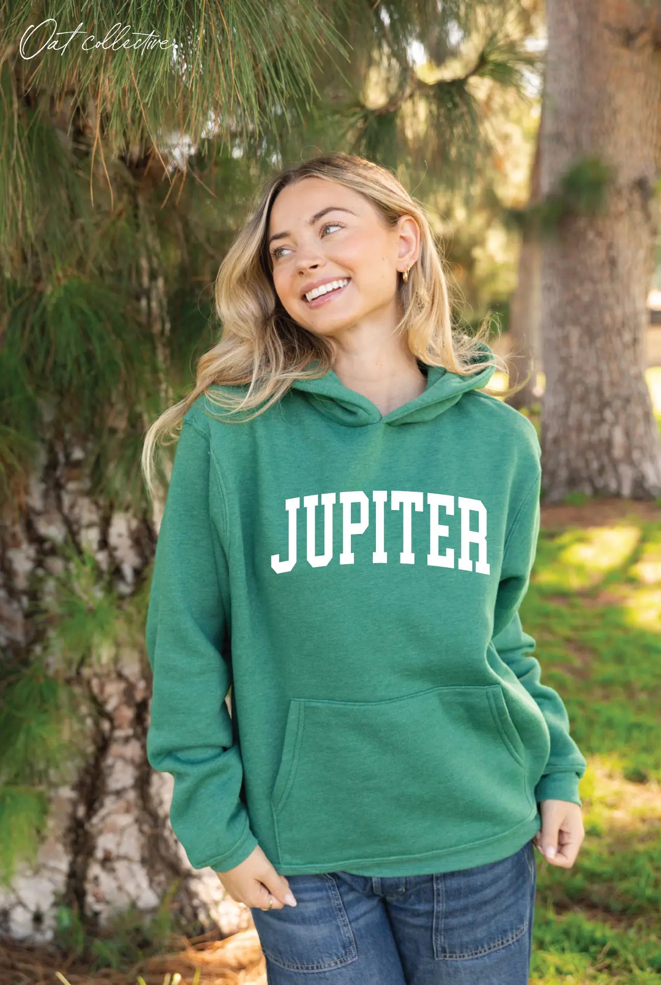 Embrace your love for Jupiter, Florida in the cozy OC Jupiter Hoodie in Forest Green. Crafted from ultra-soft, comfortable fabric, this hoodie blends warmth and local pride in one everyday essential. The plaid-lined hood adds a touch of classic coastal style, while the relaxed fit makes it perfect for morning walks, cool evenings on the dock, or casual days around town.