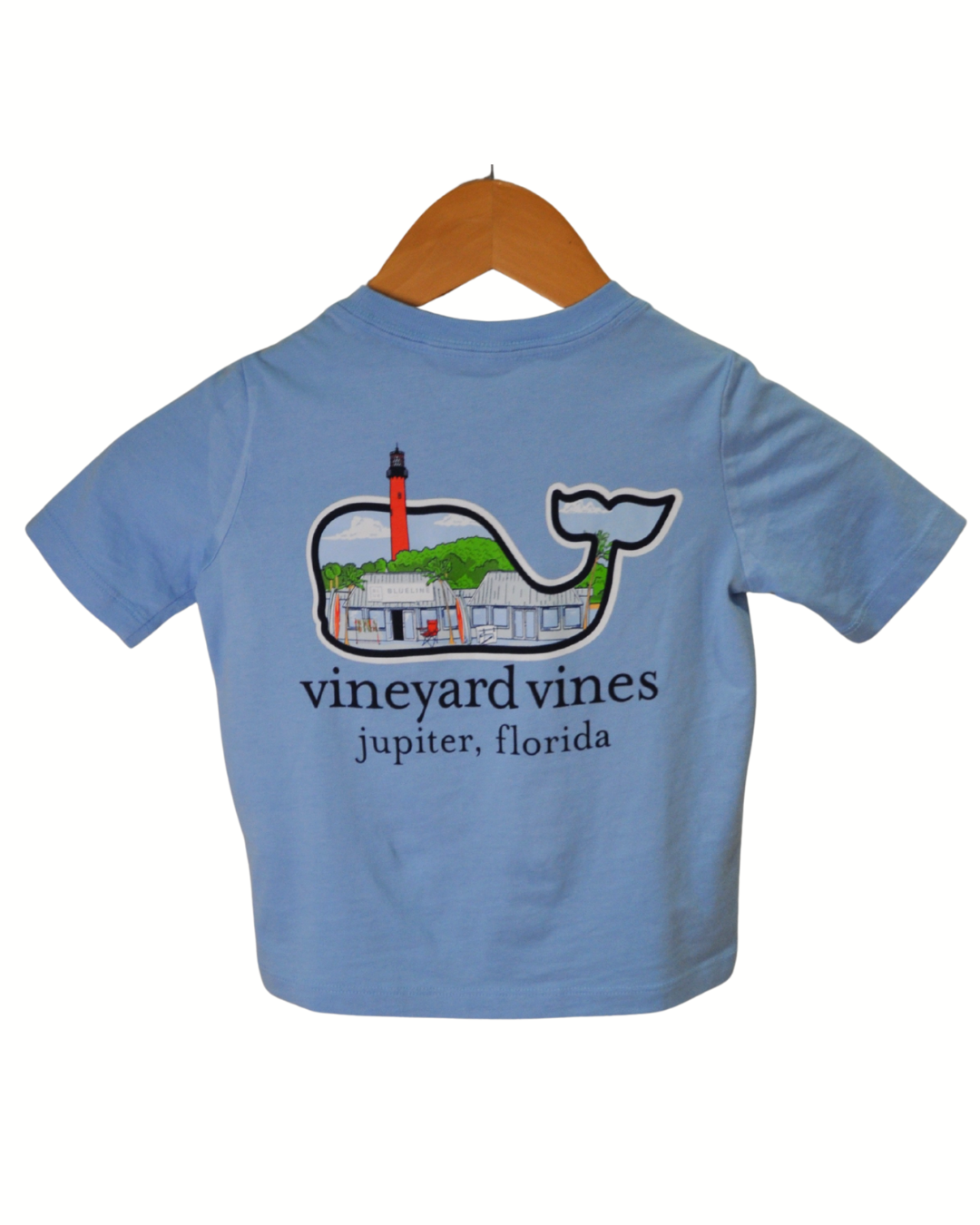 Give your little local a piece of Jupiter pride. This Youth Vineyard Vines x Blueline Storefront Lighthouse T-Shirt features the iconic Vineyard whale filled with our Jupiter storefront and lighthouse artwork. Soft, lightweight, and built for kids who run hard from beach to boat, it’s the perfect everyday tee for families who love the coast.