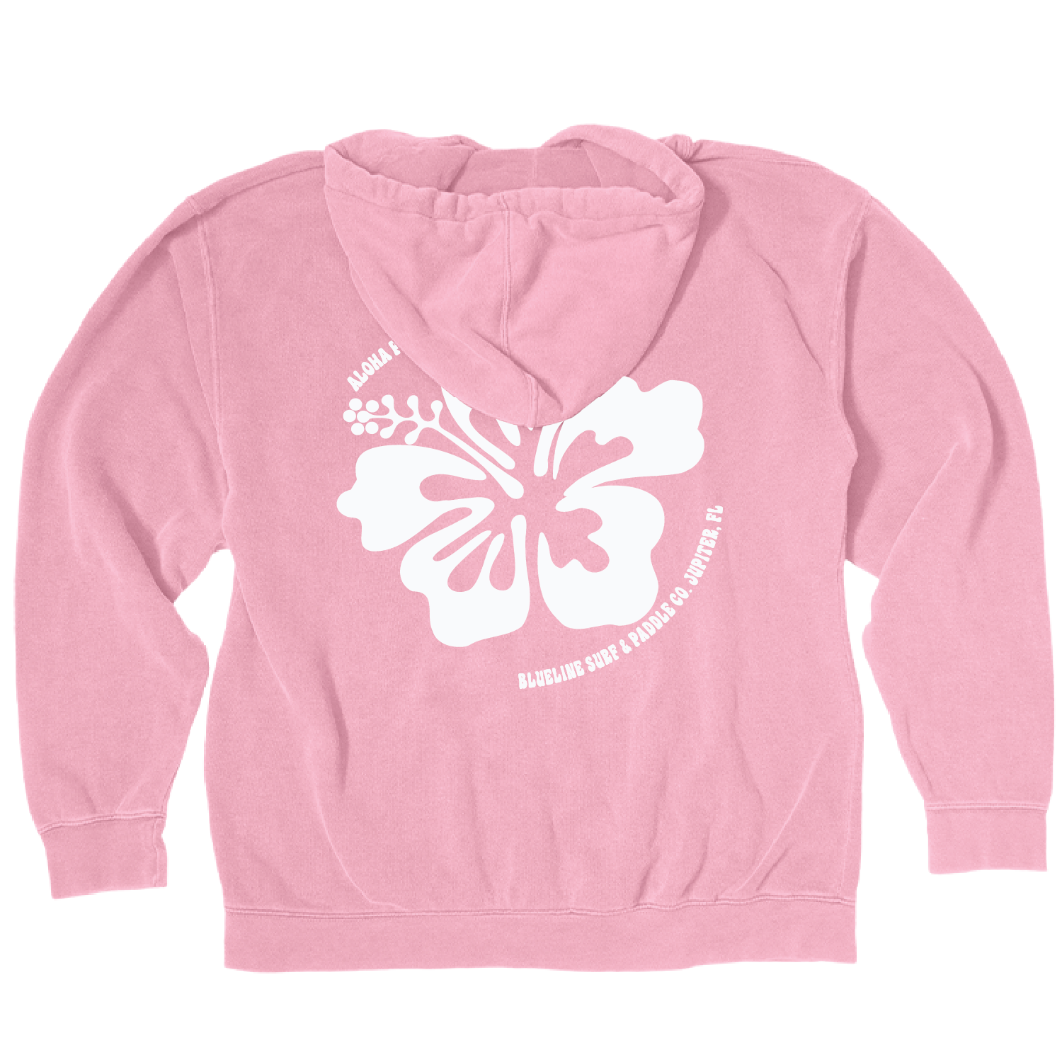 The Blueline x Blue 84 Aloha Paradise Hoodie in Pink Lemonade brings bright, tropical energy to a soft, cozy fleece hoodie. Featuring a bold hibiscus graphic across the back and a relaxed fit, this hoodie delivers warm island vibes perfect for cool beach mornings, breezy nights, and everyday Jupiter living. A standout piece in the Aloha Paradise collection and a Blue 84 customer favorite.
