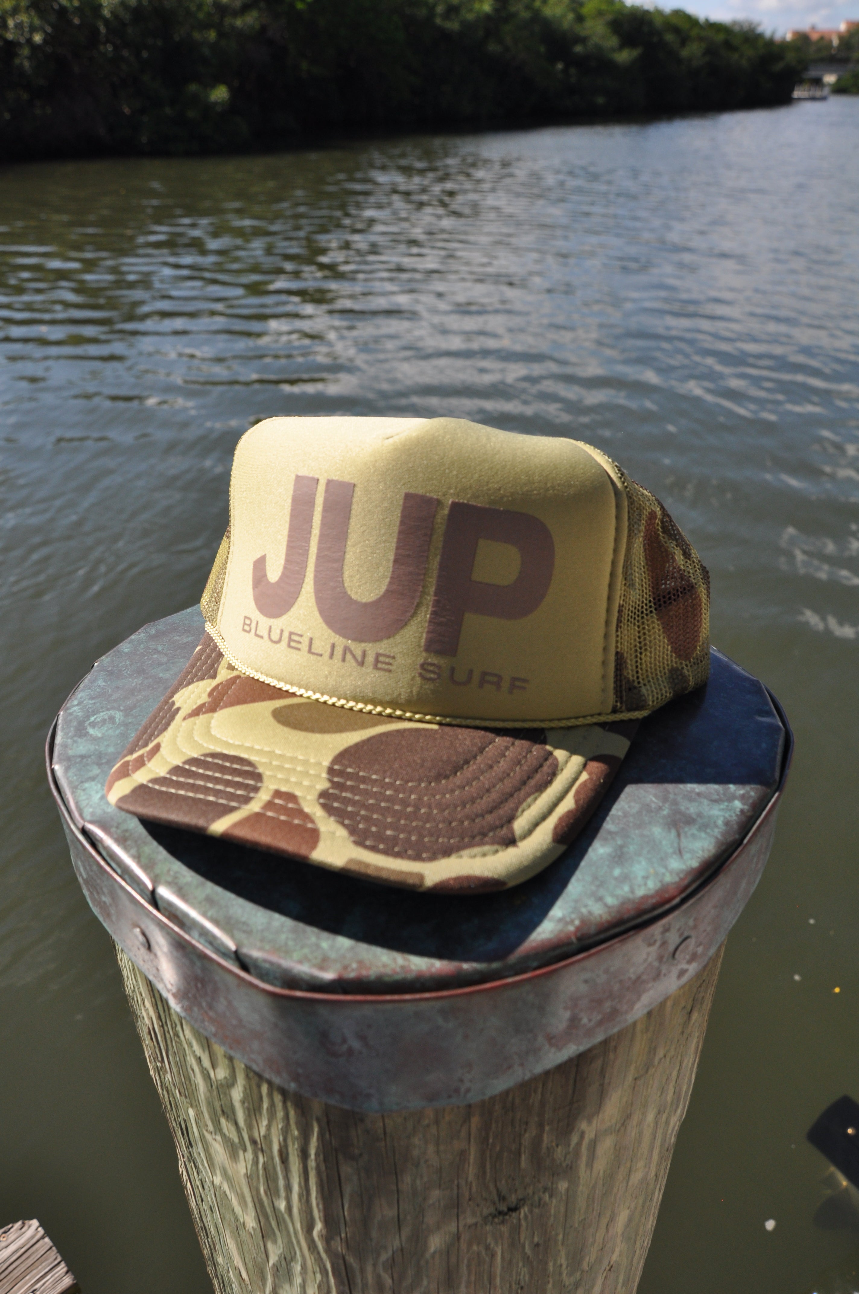 The JUP Trucker Hat in Tan/Camo blends bold Jupiter style with a rugged outdoor look. Featuring oversized JUP lettering across the foam front and a camo brim and mesh back, this hat delivers lightweight comfort and coastal attitude. Perfect for boating, beach days, fishing, and everyday Florida living.